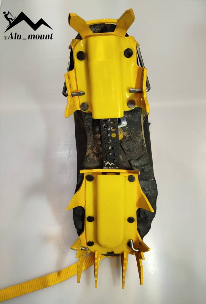 💥کرامپون 14 شاخ آلومانت 💥 ویژگیهای اصلی:🔸 تعداد شاخهها: ۱۴ شاخه (با دو نیش جلویی بلند) 🔸جنس مواد: - بدنه: فولاد منگنز + TPU (مقاوم در برابر ضربه و سرمای شدید) 🔸شاخهها: فولاد ضدزنگ با طول ۴۰ میلیمتر 🔸بخشهای پلاستیکی: SNOWBOARD TPU (مقاوم در برابر یخزدگی و شکستن) 🔸سایزبندی: قابل تنظیم برای کفشهای سایز 36تا 47 🔸سیستم ضدبرف (ANTISNOW): جلوگیری از تجمع برف زیر کرامپون 🔸قابلیت حمل: مجهز به کیف حمل زیپدار و بند دار برای نگهداری و حمل آسان 🔸وزن : 1/86kg 🏔کاربردها:- مناسب برای: - کوهپیمایی زمستانی - صعودهای یخی و یخچالهای طبیعی - عبور از برفچالها و مسیرهای ترکیبی ### مزایا:-✅ثبات بالا:** چسبندگی عالی روی یخ و برفهای سخت ✅دوام:** مقاومت در برابر خوردگی و سرمای شدید ✅تنظیم آسان:** میلهٔ وسط قابل تنظیم برای فیکس شدن روی انواع کفش ✅امنیت:** قفل پاشنه برای جلوگیری از جدا شدن ناخواسته🎿فروش تجهیزات کوهنوردی ،سنگنوردی، کمپینگ ،طبیعت گردی، اسکی ،کوهنوردی با اسکی و امداد و نجات🛒 همین حالا سفارش دهید و لذت فضای باز را با آرامش تجربه کنید! 📲 ارتباط با ما: 0930461339809130763398🏷لینک کانال ایتا فروشگاه آلومانت:eitaa.com/alumountshop🪀لینک کانال واتساپ فروشگاه آلومانت : https://chat.whatsapp.com/BcsHUqQEydT7T9ylX9lPpp📍 آدرس: اصفهان، میدان جمهوری، خیابان امام خمینی، روبروی کوچه سه 🏔 فروشگاه آلومانت — تخصصی ترین تجهیزات کوهنوردی، کمپینگ و طبیعتگردی!